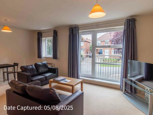 "Bright and spacious two bedroom flat in a popular student area" This stylish, modern flat offers comfortable and convenient living, perfect for students. Key Features: Two spacious bedrooms – each fully furnished with bed sets, storage furniture, a desk, and a desk chair. Modern bathroom – attractively tiled with a shower over bath, sink, and toilet. Open-plan kitchen and living area – bright and inviting, featuring comfy sofas, a flat-screen TV, a dining table with chairs, and a Juliet balcony allowing plenty of natural light. Contemporary kitchen – finished with sleek white units and equipped with all modern conveniences, including an oven/hob, fridge/freezer, washing machine, and microwave. Location: Situated in a popular student area within easy walking distance of York University, this flat benefits from excellent local amenities including shops and a convenient bus route into York City Centre. Bills not included.