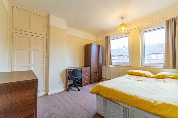 "Homely 4 bedroom property with two bathrooms and large garden close to both University of York campuses." The ground floor of this attractive property houses the first bedroom, a well equipped, bright open plan kitchen/living room (with sofas, flat screen TV and a coffee table) and a small under stairs shower room with shower, W/C and sink. The kitchen/living area overlooks the large, lush (maintained) garden! On the first floor are the three further bedrooms and a neat, contemporary bathroom with shower over bathtub, W/C and sink. Gas, electric and water rates are included with the rent.