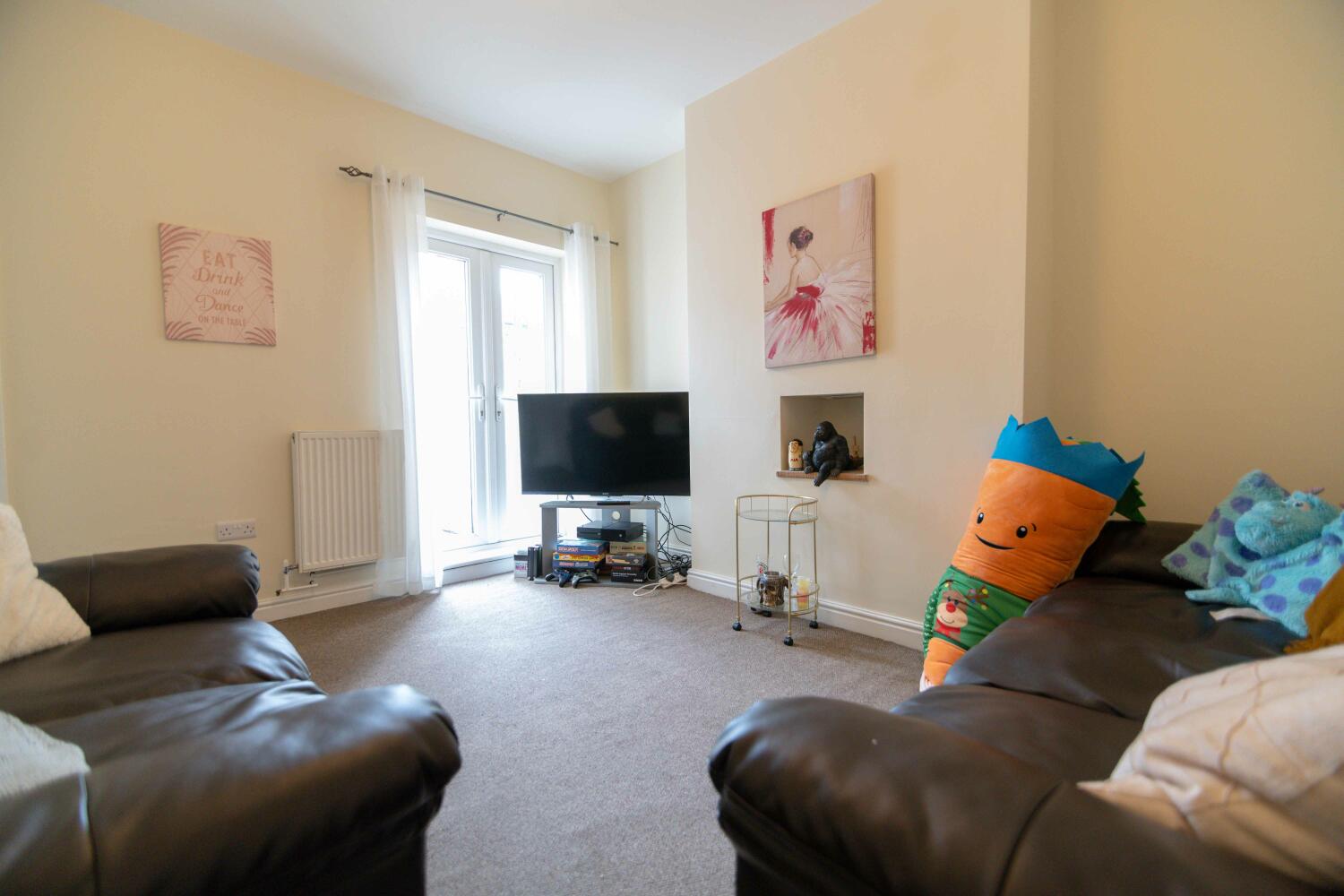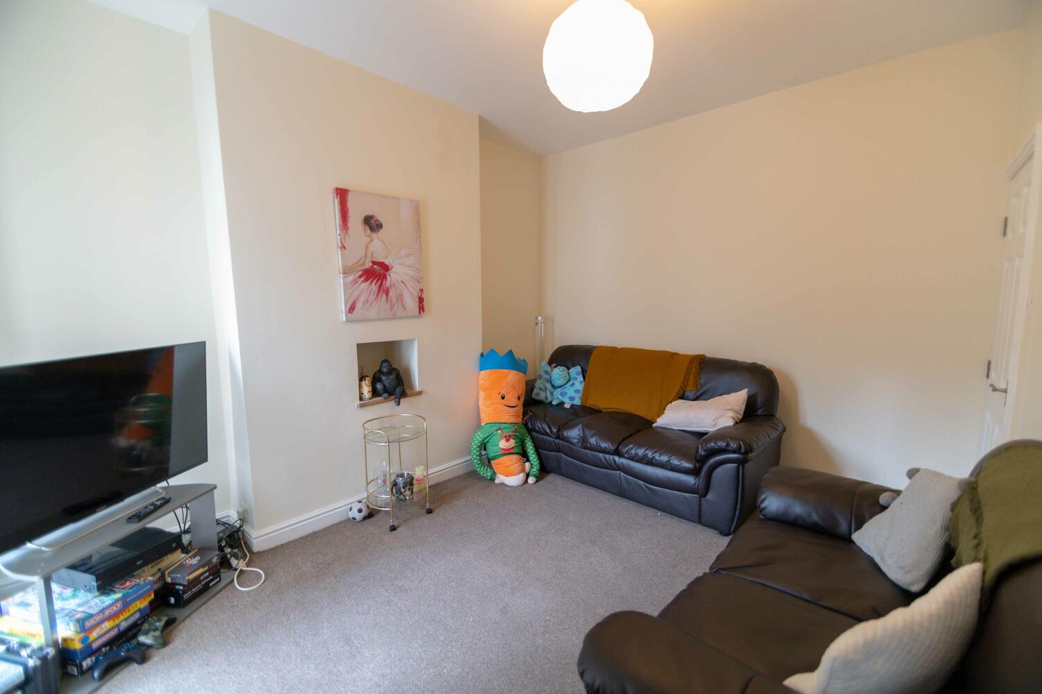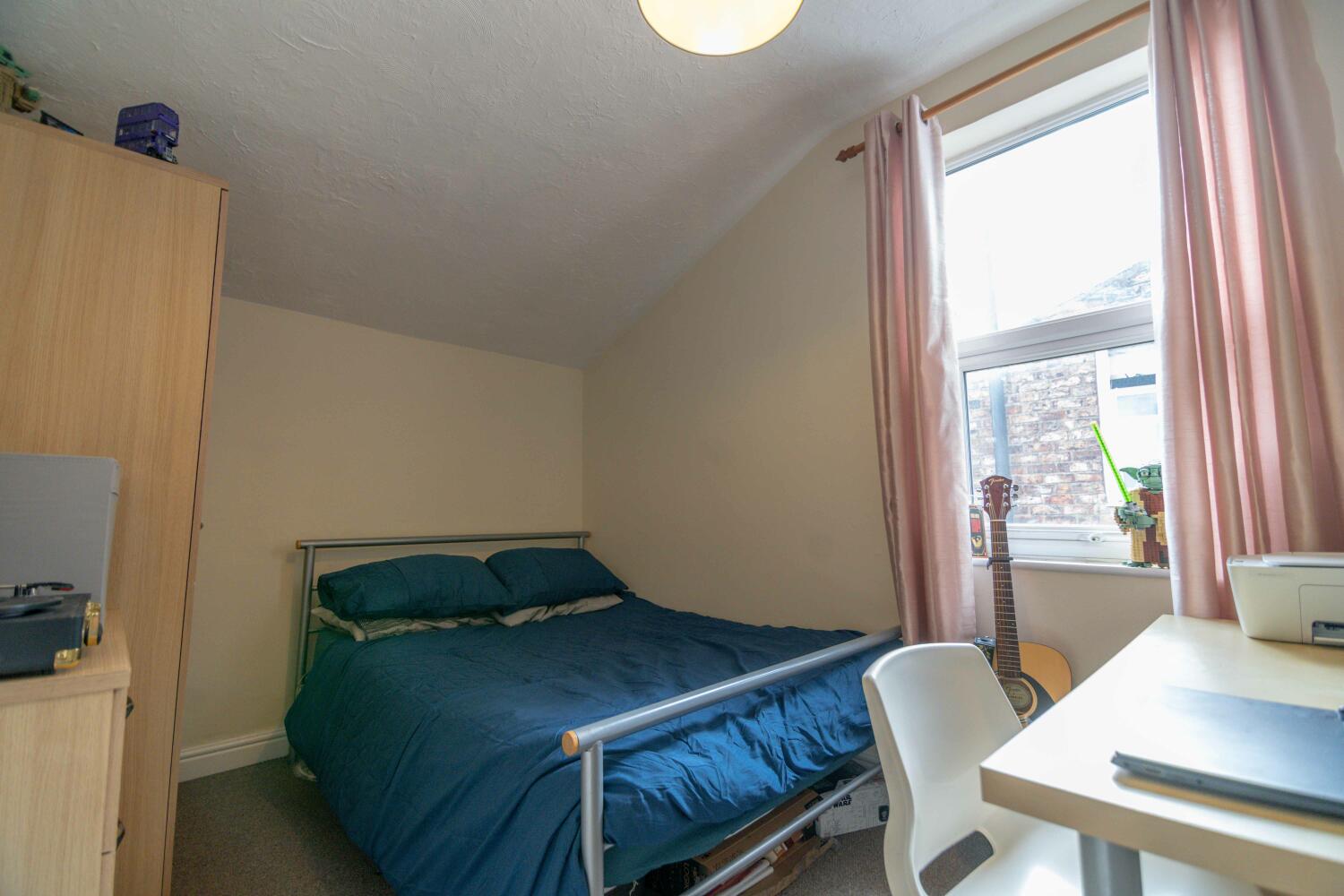 "With five double bedrooms (one with ensuite shower room), two further bathrooms ." With five double bedrooms (one with ensuite shower room), two further bathrooms and having been renovated from top to bottom, this house must be viewed. The accommodation comprises a double bedroom, lounge, kitchen with breakfast area and bathroom with a shower over the bath, toilet and washbasin on the ground floor. On the first floor are three more double bedrooms and a second bathroom. Finally, on the second floor is a large double bedroom with ensuite shower room and toilet. The spacious lounge has leather settees, a flat screen television and French doors leading to the rear yard. The kitchen, which also has a pair of French doors, has been completely re-fitted with a built in stainless steel oven and hob, fridge, freezer, washing machine. The ground floor bathroom has a full suite, with a shower over the bath, toilet and washbasin. The first floor bathroom is similarly equipped, but with a separate bath and shower cubicle. There is a late hours supermarket, cashpoint and several takeaways very close to the route to York St John's, which is only a five-minute walk away. The city centre is also within easy walking distance. Other features and facilities include double glazing and gas central heating with recent energy efficient boiler. Two pages of internal pictures follow. Gas, electric and water rates are included with the rent, broadband is free.